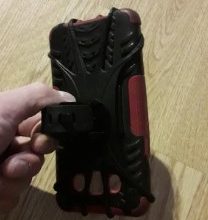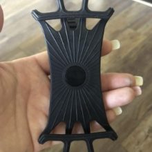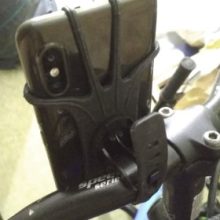 I shopped around before choosing this cell phone holder. I bike on dirt roads quite a bit, and I wanted to be sure that I purchased a product that would be sturdy enough to handle frequent bumps. This product was it! It was easy to attach to my handlebar, and easy to place my phone, complete with OtterBox case, in the rubber guards. Both case and phone have remained stable for 2 weeks of pretty challenging tests. There is no movement of either, and I am never worried about the phone falling. I highly recommend this product.